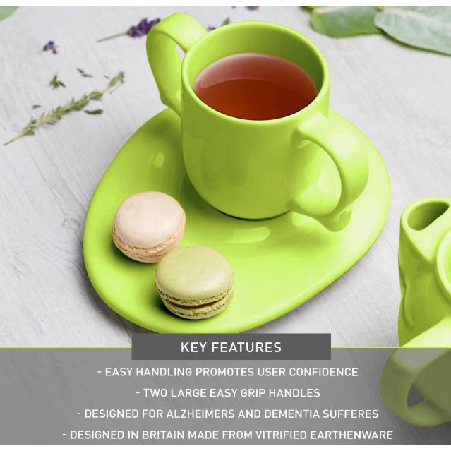This high quality ceramic range supports people who may be experiencing difficulties with eating and drinking to participate in these tasks in a dignified way. Each plate, bowl and mug/cup has been carefully designed and coloured to assist people that may struggle with eating and drinking and is especially beneficial to those with long term memory conditions or people with limited manual dexterity.
