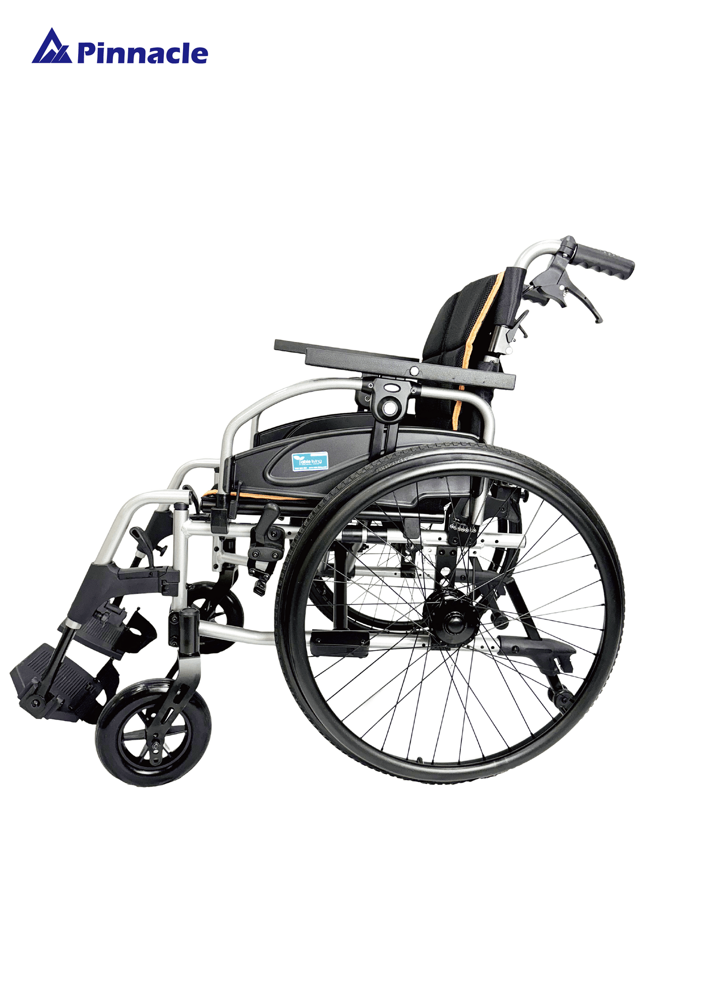 The Pinnacle Ultraroll Pro Self-Propelling Wheelchair offers superior comfort with adjustable armrests and footrests for a custom fit. Front-wheel suspension ensures a smooth ride on uneven surfaces, combining comfort, stability, for everyday use.
