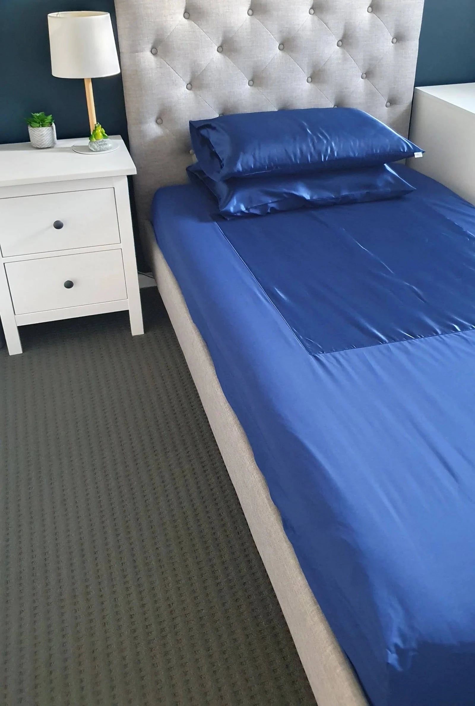The satin panel, which is 90cm long and 17cm away from each side, sits under your shoulders, back and hips and allows you to slide and pivot your hips over more easily without having to lift them. It's also particularly helpful when getting in and out of bed because when you're on the edge of the bed you have the sheeting under your bottom for extra grip and stability.