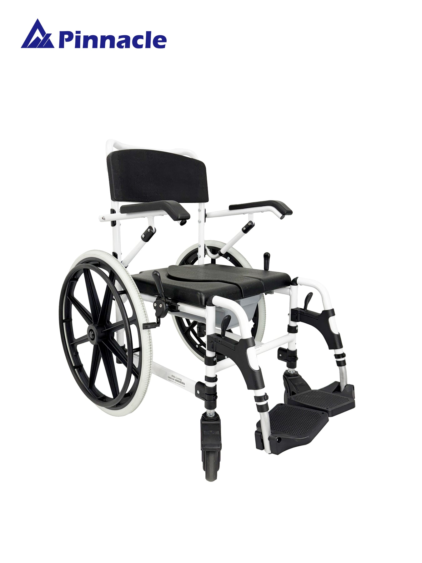The Pinnacle Deluxe Shower Commode Self-Propelled offers comfort and ease with a lightweight design for effortless maneuverability. Tool-free height and leg rest adjustments provide quick customization, making it ideal for users seeking independence and convenience for daily hygiene.