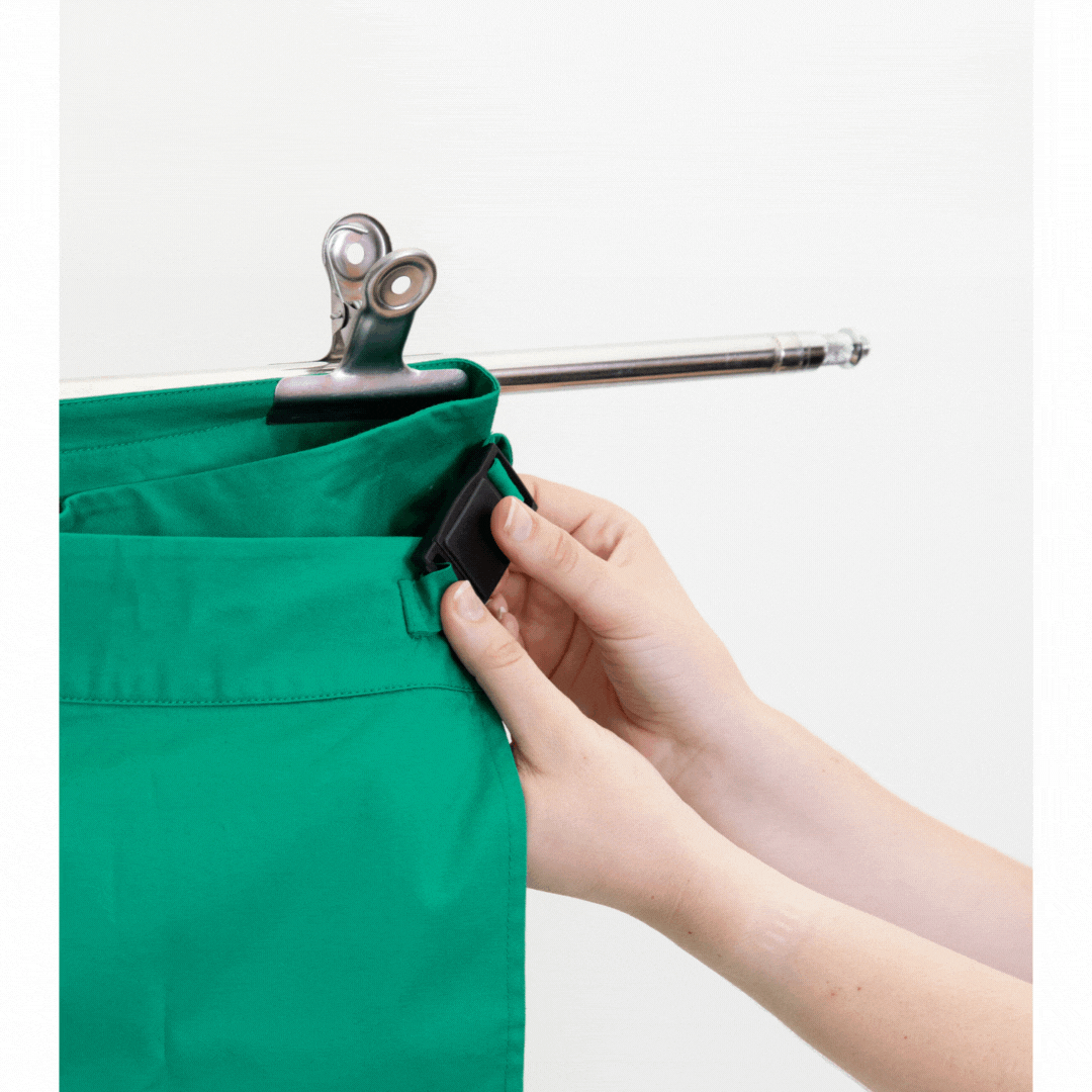 With a statement magnetic belt buckle, this bold green wrap skirt elevates any outfit. Featuring adjustability via velcro and belt functionality, you can position the skirt wherever is most comfortable for you.