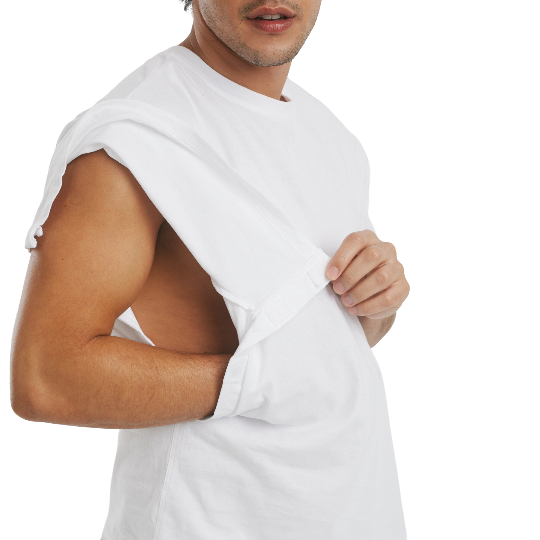 The Shapes United Men's ‘Side Fastening T-Shirt’. A wardrobe staple for those with limited arm mobility who love quality clothing. Hello comfy independent dressing!