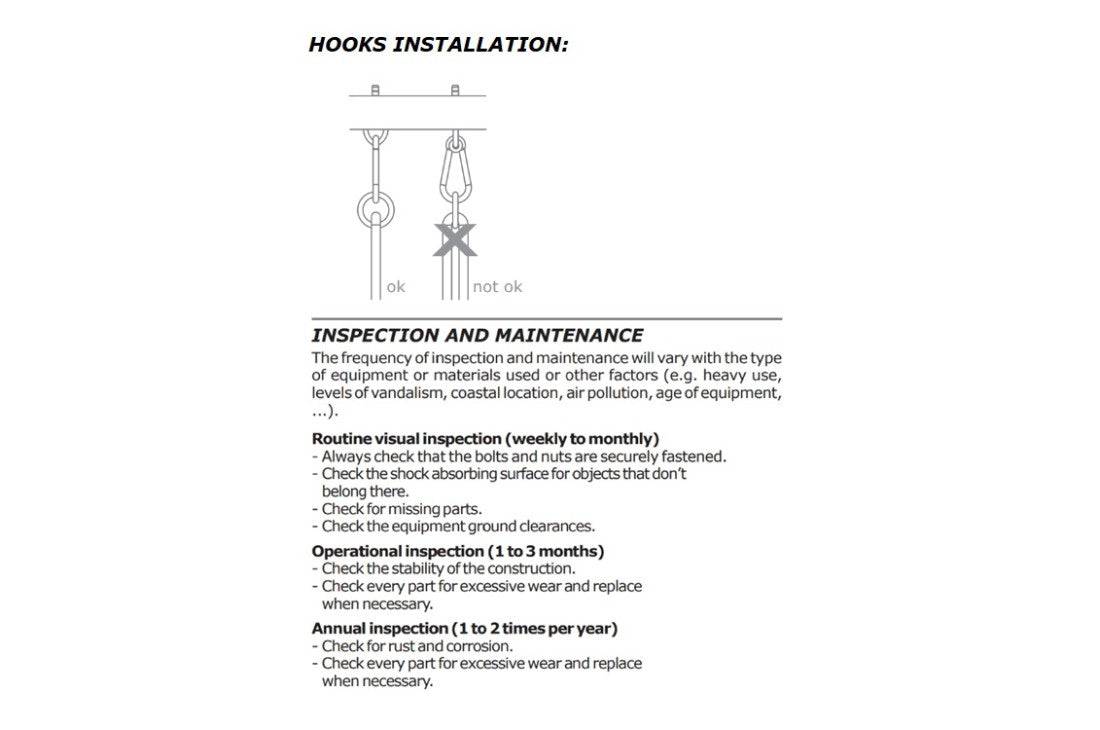 Operational inspection (1 to 3 months) - Check the stability of the construction. - Check every part for excessive wear and replace when necessary.